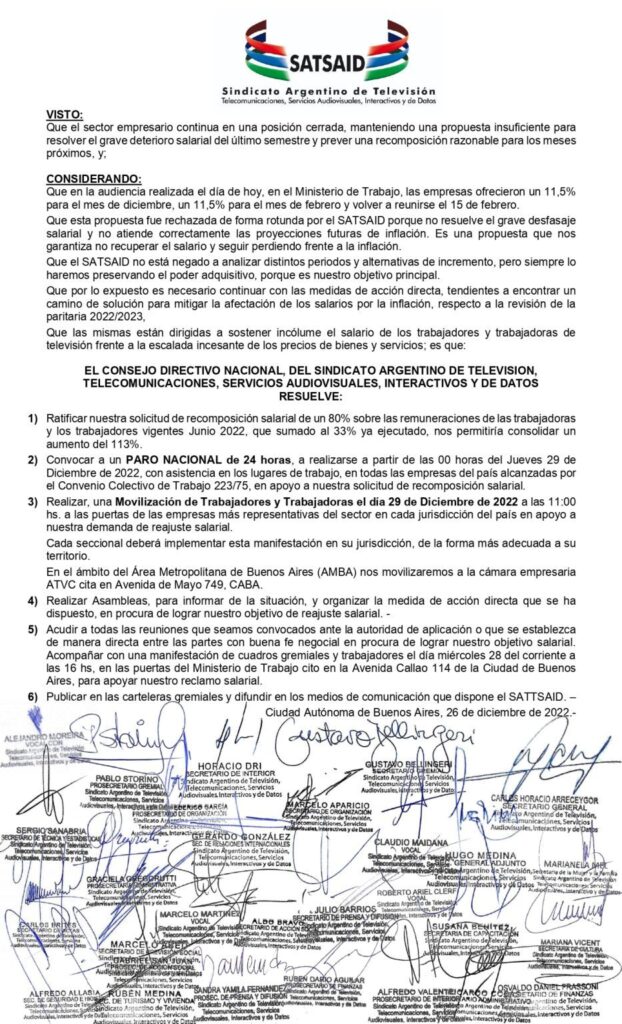 ⚠️🇬🇲 ANTE LA FALTA DE RESPUESTAS DEL SECTOR EMPRESARIO, EL SATSAID CONVOCA UN NUEVO PARO EL 29 DE DICIEMBRE