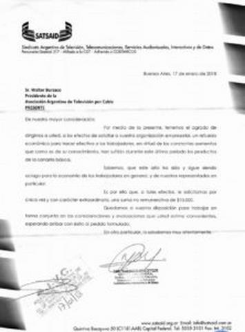 Compañeros compartimos nota presentada ante la cámara empresaria ATVC, en la cual se solicita un bono complementario como refuerzo salarial por única vez, de pesos $10.000. Los mantendremos informados al respecto.