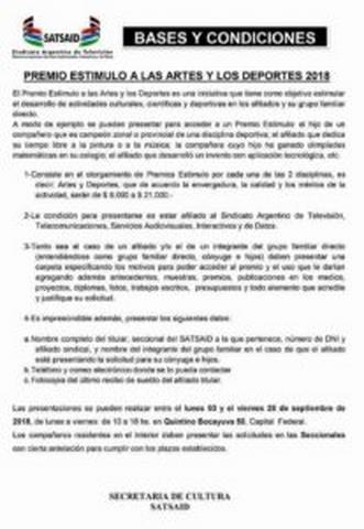 Tenés tiempo de postularte desde el lunes 03 al viernes 28 de septiembre de 2018. La recepción de los postulantes en Sindicato Argentino de Televisión Telecomunicaciones, Servicios Audivisuales, Interactivos y de Datos, Sede Parana – Av. Ramírez 2834 – a tus delegados de base o a los telefonos :(0343) 4311671 / 4233460.