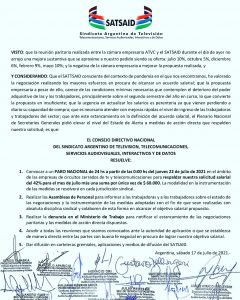 En el marco de la paritaria el SATTSAID logró un principio de entendimiento con la cámara empresaria ATVC, que nuclea al sector de circuitos cerrados y telecomunicaciones, por un incremento salarial del 40%, en las negociaciones paritarias para el período julio 2021 – junio 2022.