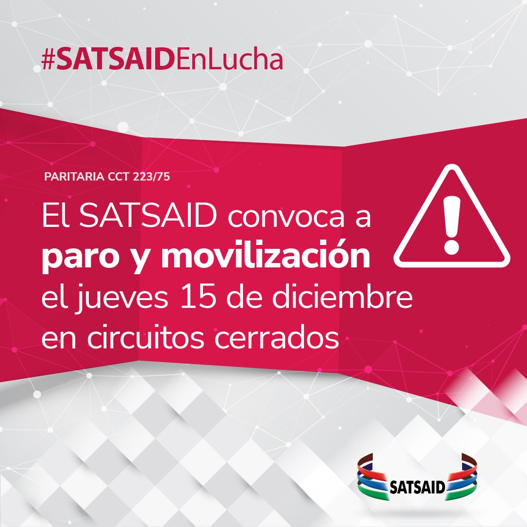 EL SATSAID CONVOCA A PARO Y MOVILIZACIÓN EL JUEVES 15 DE DICIEMBRE EN CIRCUITOS CERRADOS