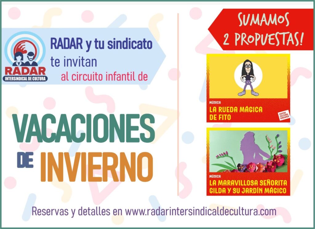 • “La Rueda Mágica de Fito” y  “La maravillosa señorita GIlda y su jardín mágico” . Vacaciones de invierno con la Intersindical de Cultura Radar. Más información en: www.radaintersindicalcultura.com