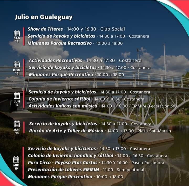 • Sábados de julio – Espectáculos, festivales, feria de artesanos y gastronómica – Parque Integrador Unquillo – Entrada libre y gratuita