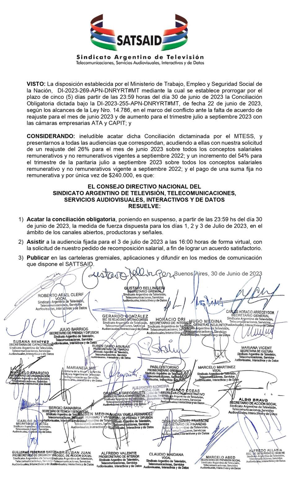 EL MINISTERIO DE TRABAJO DICTÓ UNA NUEVA CONCILIACION OBLIGATORIA EN LA PARITARIA CON ATA Y CAPIT POR 5 DÍAS DESDE LAS 00HS