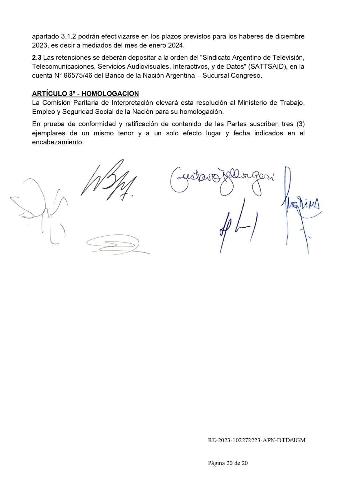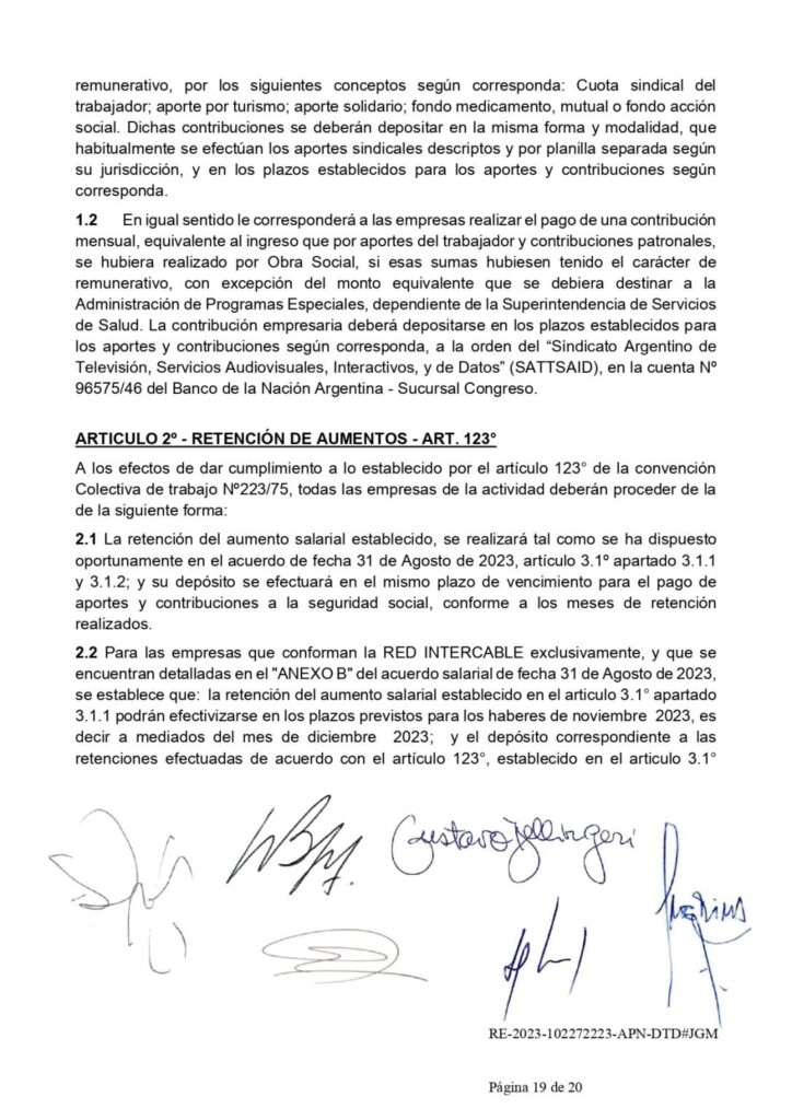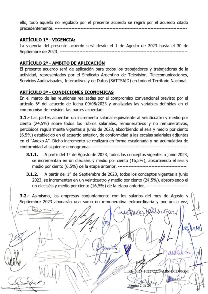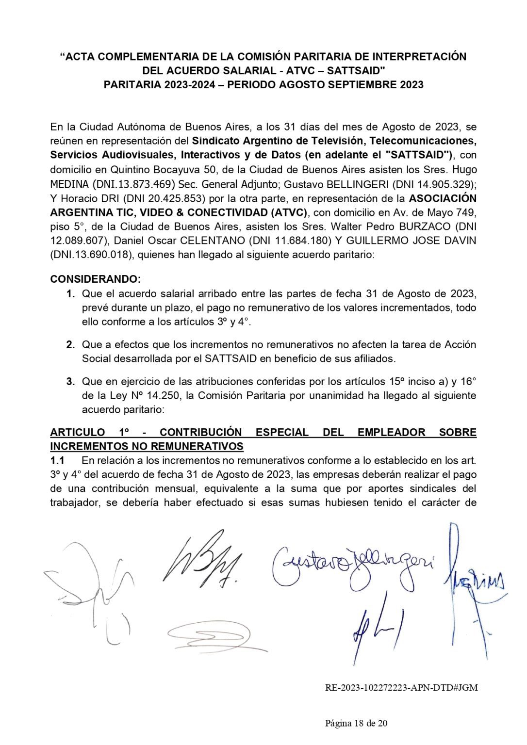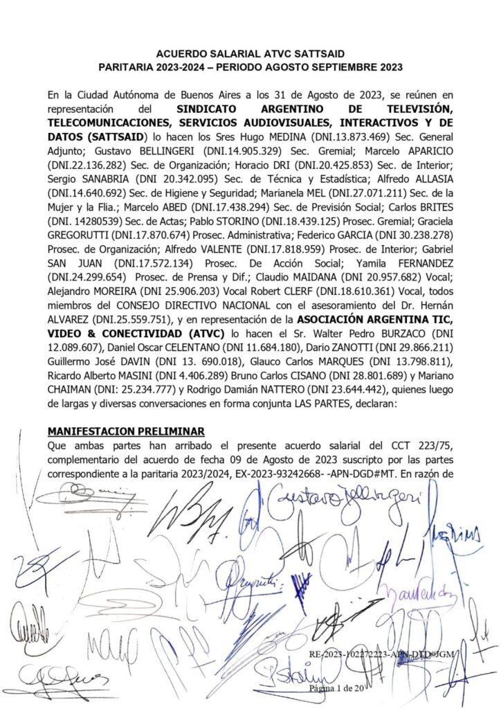 EL SATSAID FIRMÓ EL ACUERDO PARITARIO CON ATVC TRAS SER APROBADO POR LOS TRABAJADORES POR AMPLIA MAYORÍA