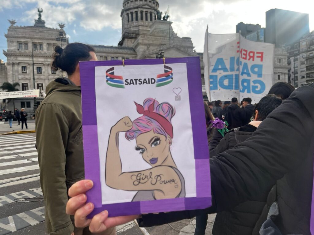 Por su parte, la secretaria de Mujer y Familia del Consejo Directivo Nacional del SATSAID, Marianela Mel, expresó desde el Congreso: “No es un 3 de junio más. En este Ni Una Menos están en peligro todos los derechos conquistados por las mujeres y diversidades que nos precedieron. No es una idea nuestra, es algo que viene afirmando el Poder Ejecutivo desde sus ejes de campaña hasta la actualidad”.