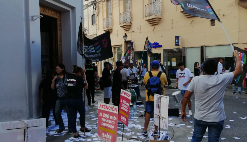 “Hoy es un día de lucha, estamos movilizados para reclamar por nuestros salarios”, comenzó su discurso Arreceygor, ante una multitud de compañeros y compañeras que se movilizaron a Av. Paseo Colón 525, donde tienen sus oficinas ATVC, y agregó: “En estos procesos inflacionarios del país, cada punto que perdemos es más dificil recuperarlo, por eso somos intransigentes a la hora de pelear el salario”.