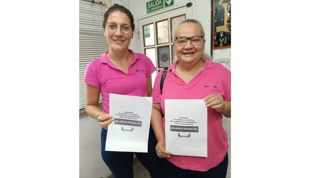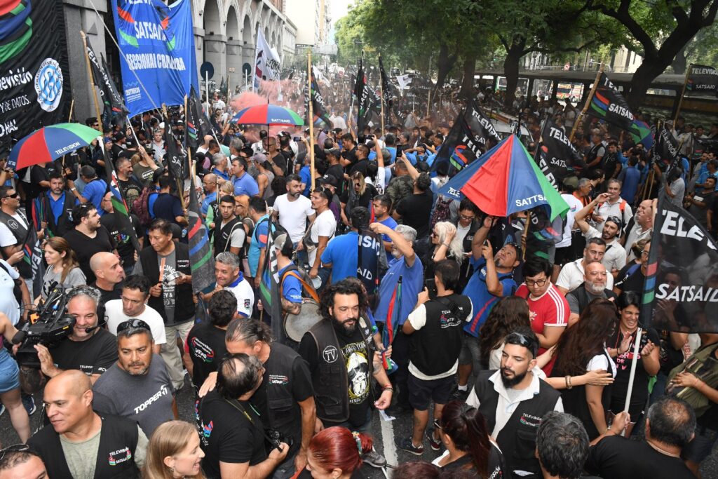 El SATSAID realizó hoy una jornada nacional de lucha, que incluyó volanteadas y movilizaciones en distintas provincias, y una multitudinaria marcha a las puertas de la Asociación Argentina TIC, Video y Conectividad (ATVC), en la Ciudad de Buenos Aires. Miles de trabajadores y de trabajadoras encuadrados en el Convenio Colectivo de Trabajo 223 se movilizaron en todo el país para visibilizar la urgente situación salarial que atraviesa nuestro sector. El epicentro de la jornada fue la marcha a ATVC, encabezada por nuestro secretario General, Horacio Arreceygor, acompañado del Consejo Directivo Nacional, de los secretarios Generales de las seccionales más cercanas, y una numerosa columna de compañeros y compañeras de los circuitos cerrados.