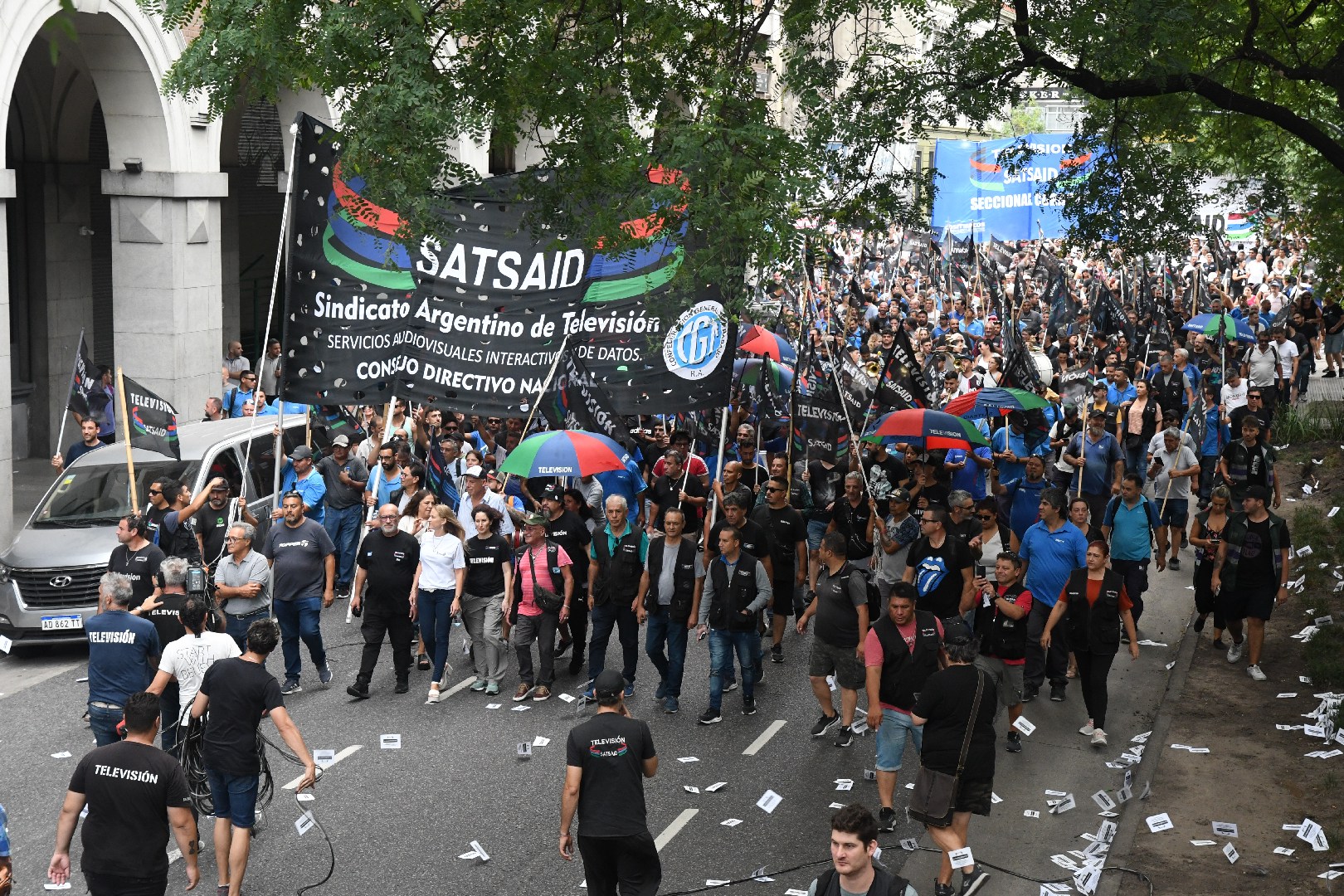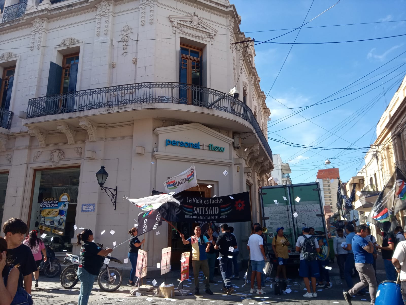 El SATSAID realizó hoy una jornada nacional de lucha, que incluyó volanteadas y movilizaciones en distintas provincias, y una multitudinaria marcha a las puertas de la Asociación Argentina TIC, Video y Conectividad (ATVC), en la Ciudad de Buenos Aires. Miles de trabajadores y de trabajadoras encuadrados en el Convenio Colectivo de Trabajo 223 se movilizaron en todo el país para visibilizar la urgente situación salarial que atraviesa nuestro sector. El epicentro de la jornada fue la marcha a ATVC, encabezada por nuestro secretario General, Horacio Arreceygor, acompañado del Consejo Directivo Nacional, de los secretarios Generales de las seccionales más cercanas, y una numerosa columna de compañeros y compañeras de los circuitos cerrados.