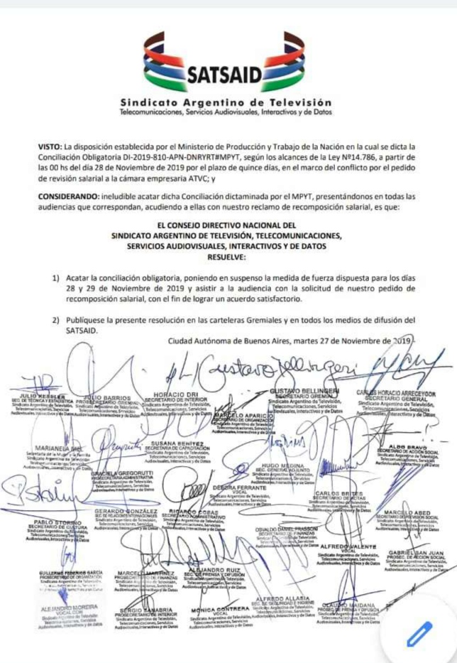 Ministerio de Trabajo de la Nación dicta la conciliación obligatoria , por lo tanto se suspenden las medidas de fuerza programadas para los días 28 y 29 de Noviembre .